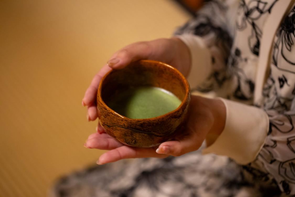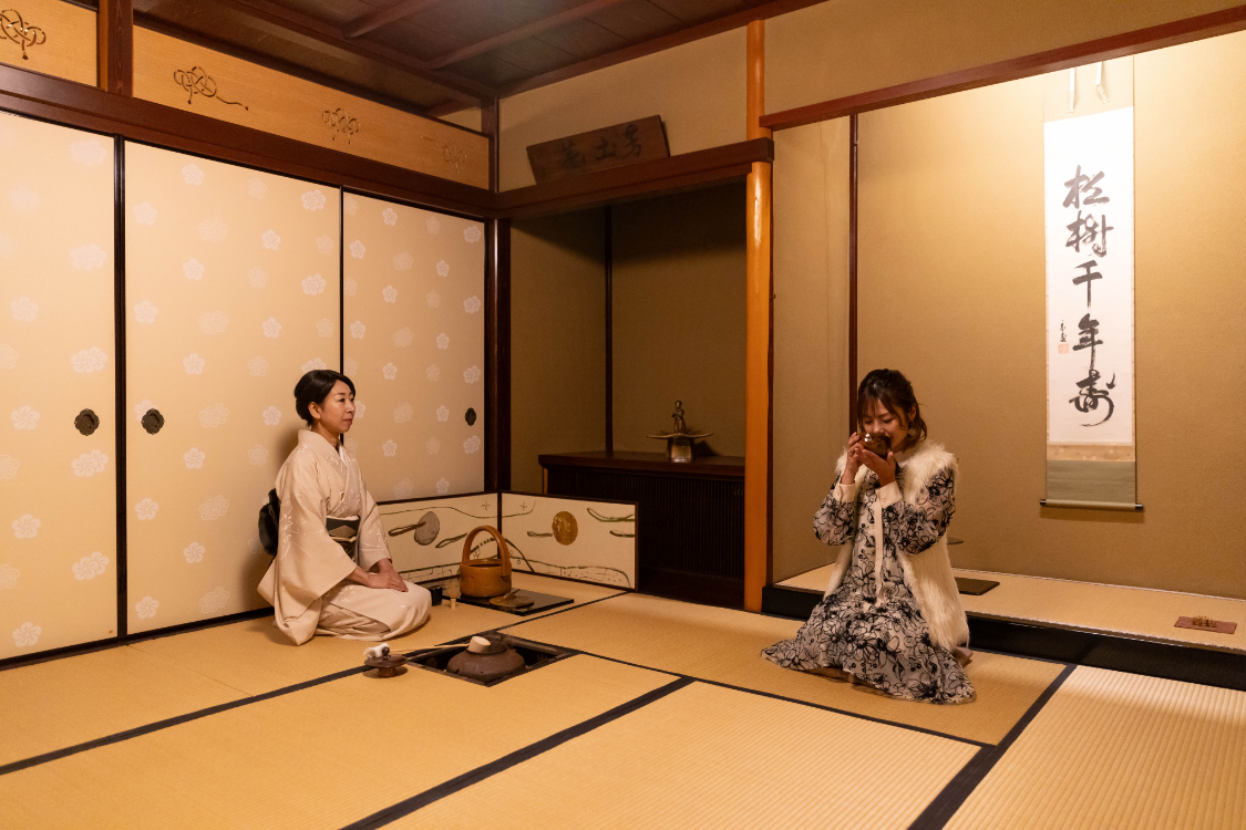 呈茶体験では、歴史的に価値のある茶盌を、