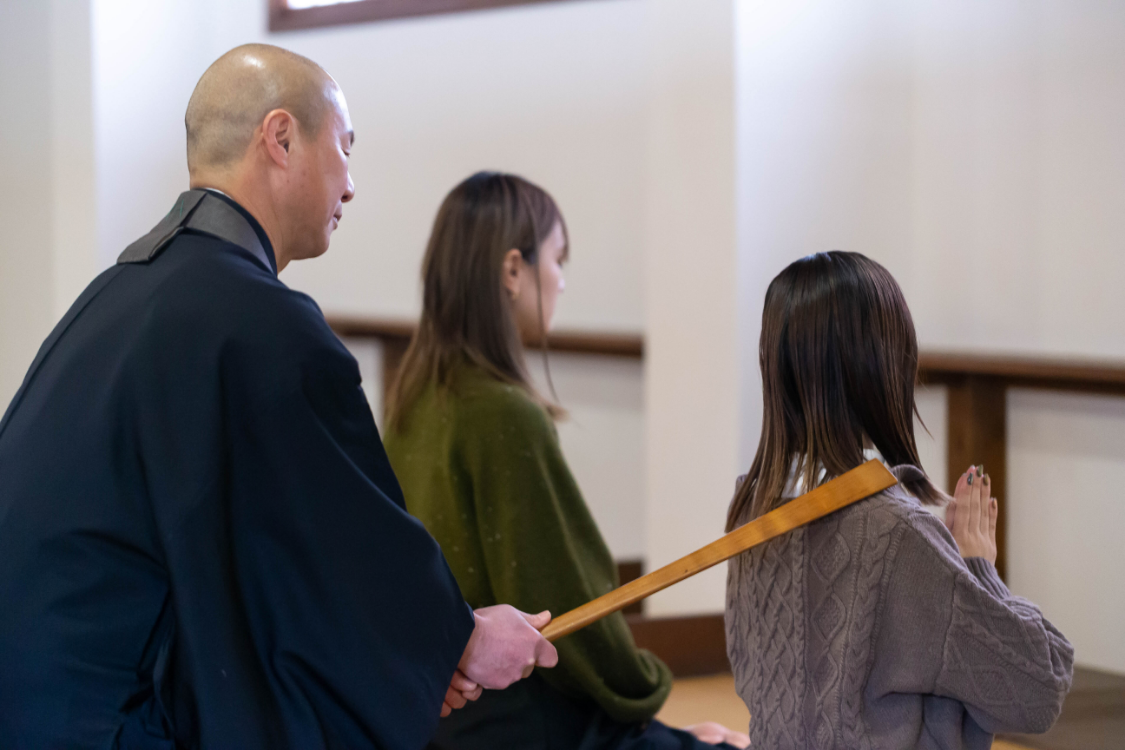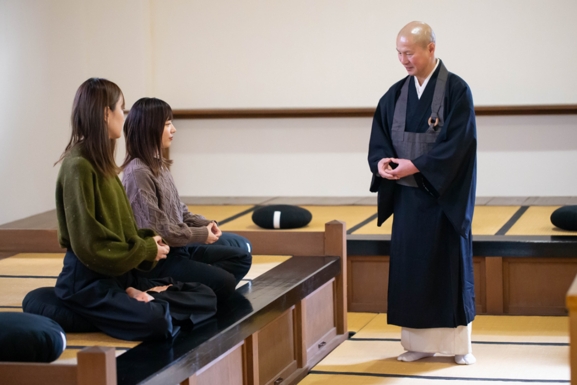 「正しい姿勢を保ち、正しい呼吸法で座禅を組めるようになれば、心身ともに整いますよ」と住職が教えてくれました。