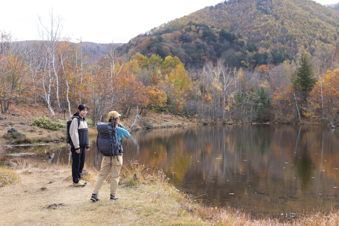 最初に訪れたのは「一の瀬園地」。天気が良い日は、池面に乗鞍岳が逆さに映り込む「まいめの池」は、絶好のフォトスポット!季節ごとに変わる山野草や野鳥を観察しながら、途中、ガイドさんが淹れてくれたコーヒーでひと休み。大自然の中で味わう、格別の一杯でした。次に足を運んだのは「善五郎の滝」。夏は心地よいマイナスイオンが広がり、冬は氷瀑ブルーが楽しめる人気の場所。滝見台からも水しぶきが感じられるほどで、大自然の力強さを間近で体感しました。さらに、静寂に包まれた「牛留池」や甘い香りが特徴のしらびその林など、乗鞍高原でのトレッキングは見どころがいっぱい。どこを歩いても自然の息吹に包まれ、深呼吸するたびに心身がリフレッシュしていくのを感じました。